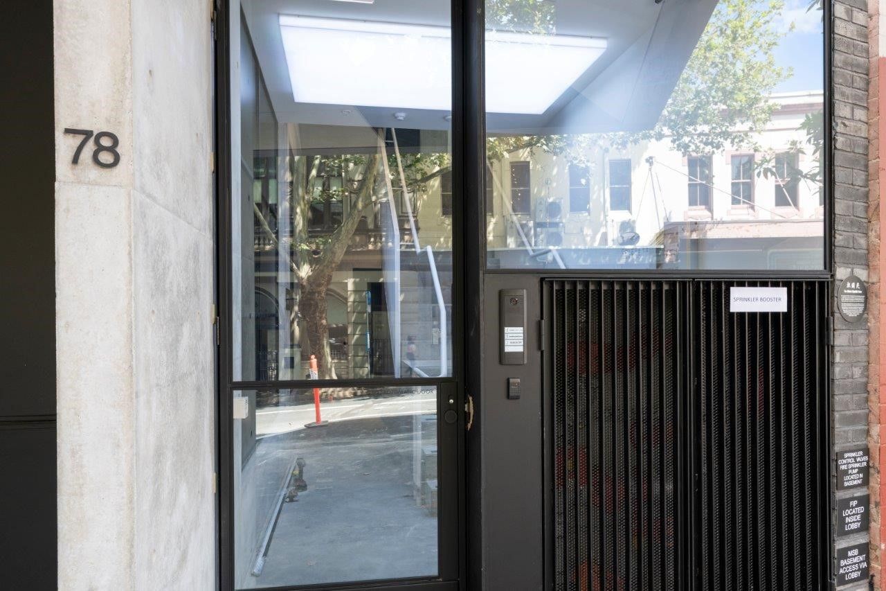 78 Campbell Street is a five-level building with a basement. It comprises of four individual commercial tenancy levels. Each level has exclusive lift and stairs access from a spacious secured Campbell Street entry lobby. The modern lobby features off-form concrete, a steel framed automated entrance door, customized light box ceiling installation and a bespoke black elevator.