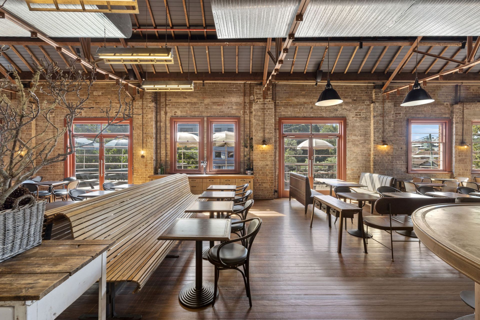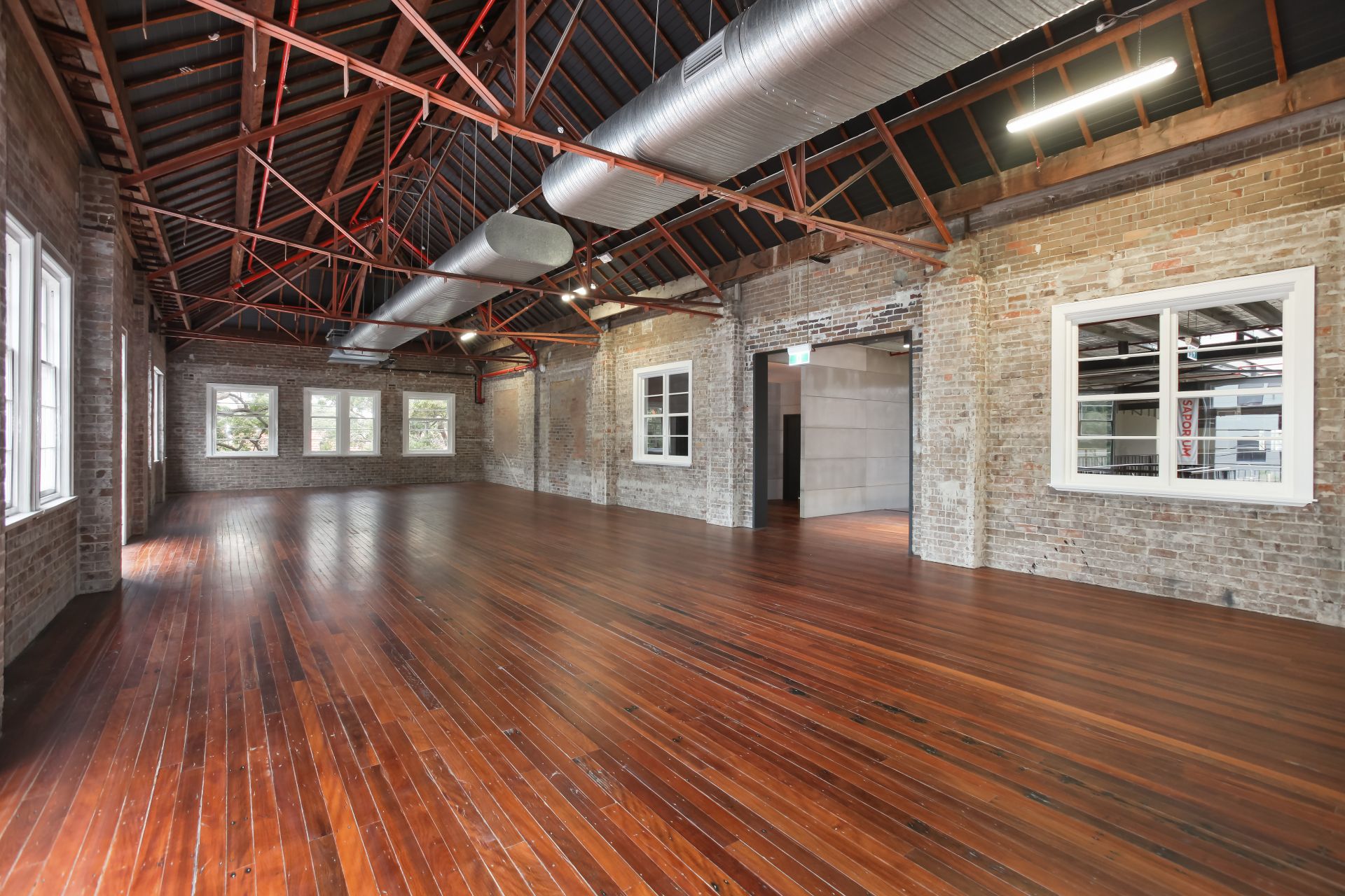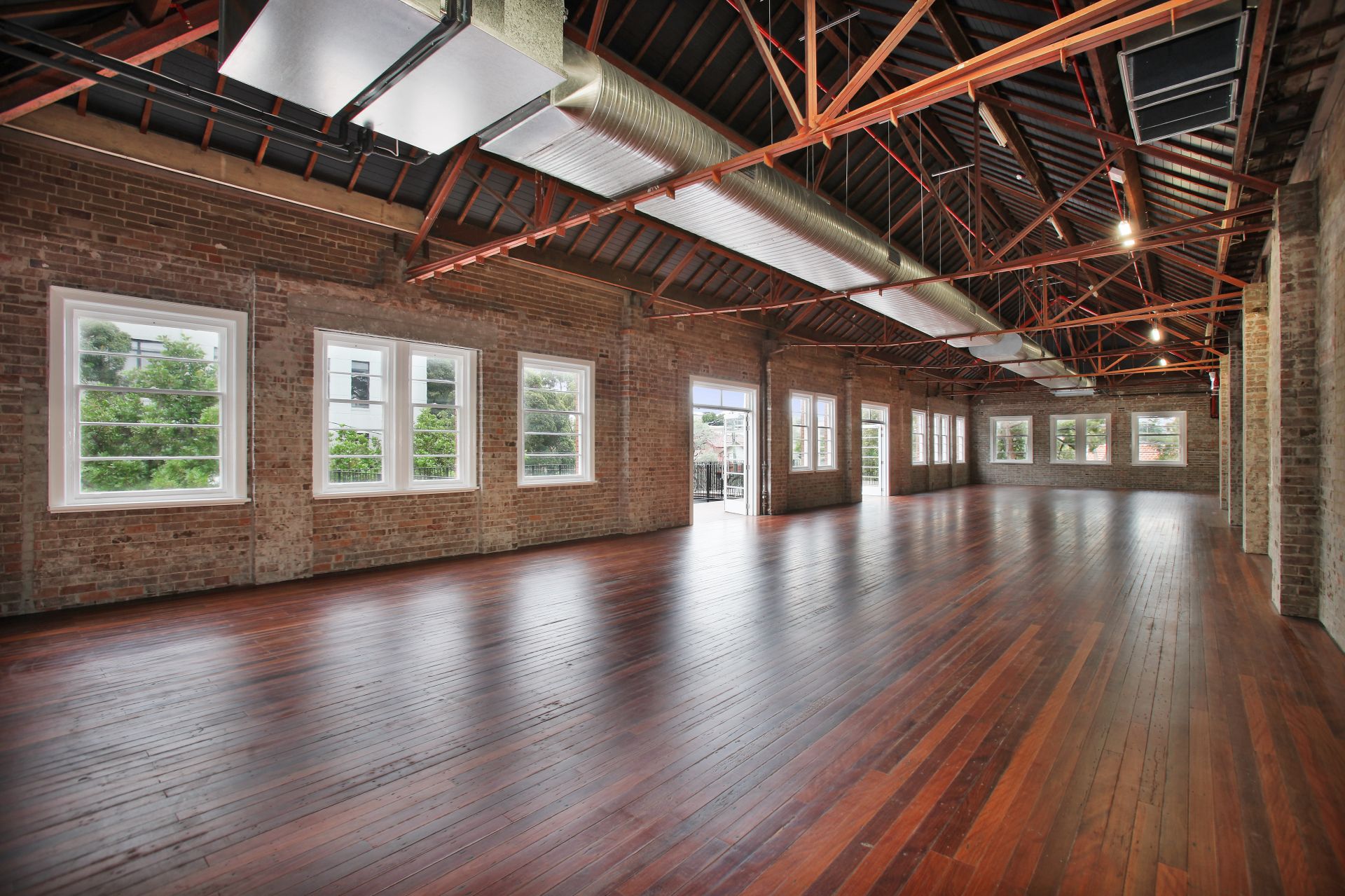 - Exposed brick walls set on polished timber floors