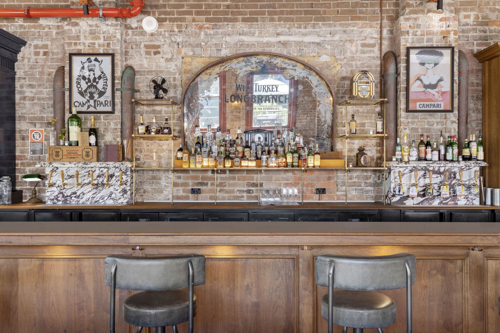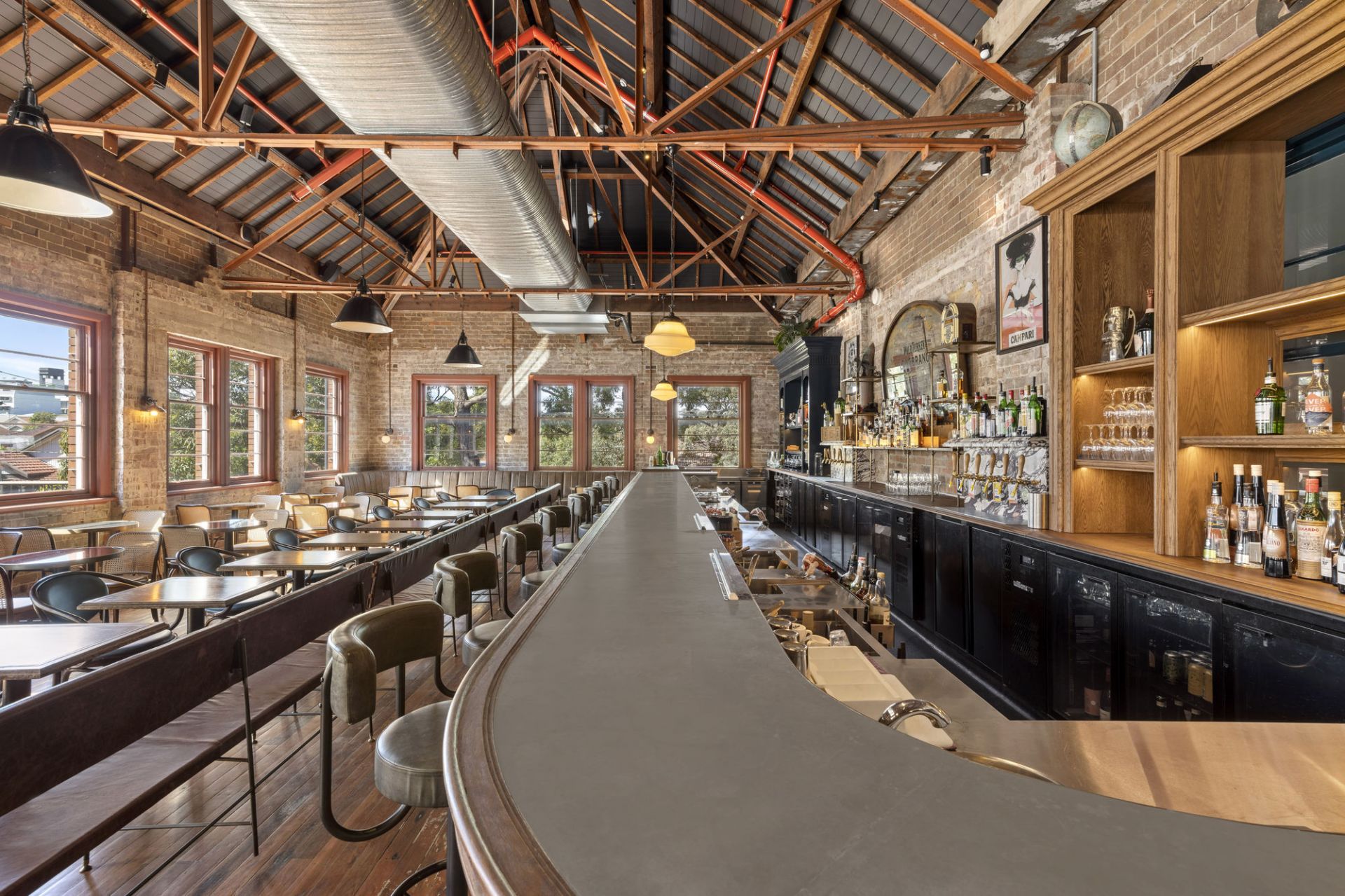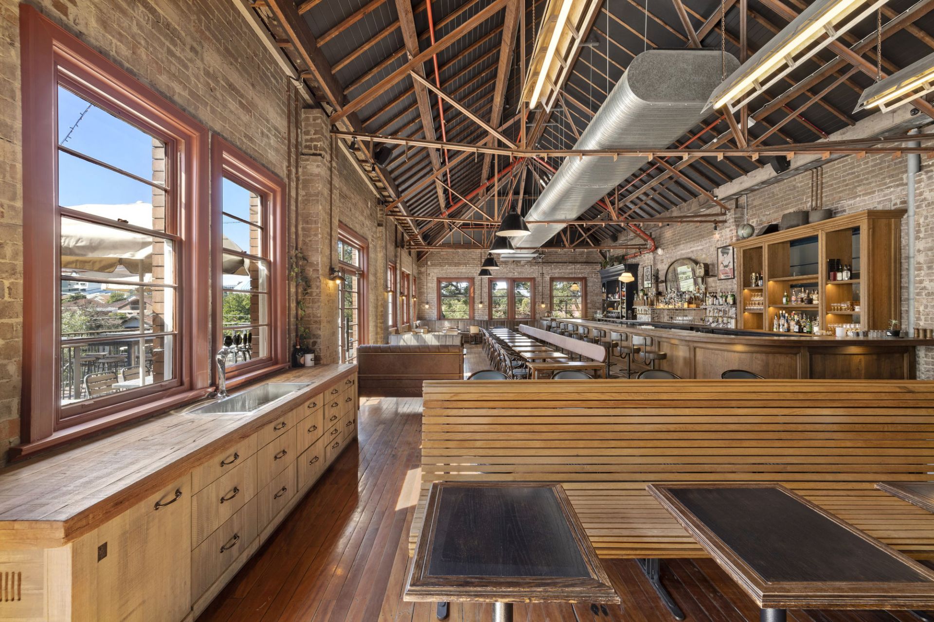 - Exposed brick walls set on polished timber floors